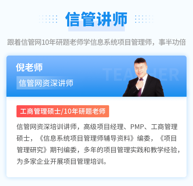 信管網(wǎng)為信息化考試與服務(wù)專(zhuān)業(yè)平臺(tái),目前開(kāi)設(shè)有信息系統(tǒng)項(xiàng)目管理師、系統(tǒng)規(guī)劃與管理師、系統(tǒng)集成項(xiàng)目管理工程師、信息安全工程師考試與學(xué)習(xí)服務(wù)。提供了包括考試報(bào)名、考試課程、成績(jī)查詢(xún)、真題發(fā)布、資料下載、案例分析、論文、考試教程、在線題庫(kù)、每日一練、章節(jié)練習(xí)、信管人才、論壇交流等服務(wù)。我們將為廣大信管考友提供專(zhuān)業(yè)、及時(shí)、全面、貼心的考試服務(wù),立足于為廣大信管考友建造一個(gè)優(yōu)質(zhì)的學(xué)習(xí)平臺(tái),讓考生都能夠享受學(xué)習(xí),順利通關(guān)。