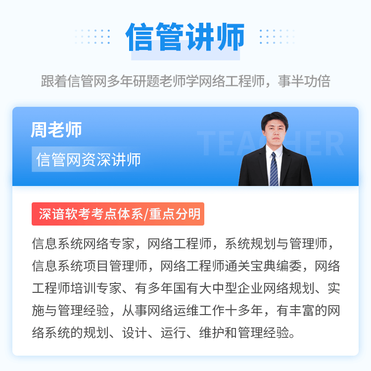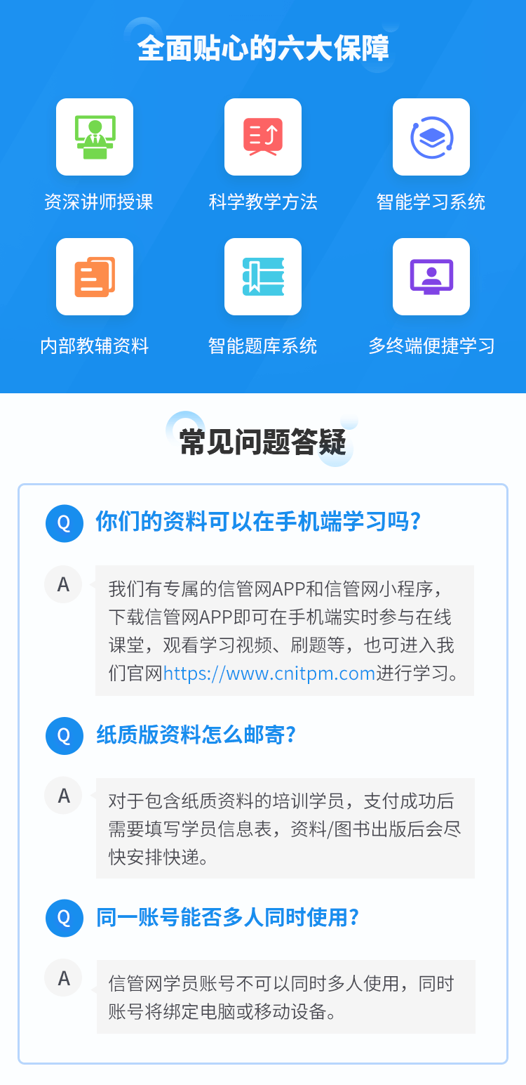 信管網(wǎng)為信息化考試與服務(wù)專業(yè)平臺,目前開設(shè)有信息系統(tǒng)項目管理師、系統(tǒng)規(guī)劃與管理師、系統(tǒng)集成項目管理工程師、信息安全工程師考試與學習服務(wù)。提供了包括考試報名、考試課程、成績查詢、真題發(fā)布、資料下載、案例分析、論文、考試教程、在線題庫、每日一練、章節(jié)練習、信管人才、論壇交流等服務(wù)。我們將為廣大信管考友提供專業(yè)、及時、全面、貼心的考試服務(wù),立足于為廣大信管考友建造一個優(yōu)質(zhì)的學習平臺,讓考生都能夠享受學習,順利通關(guān)。